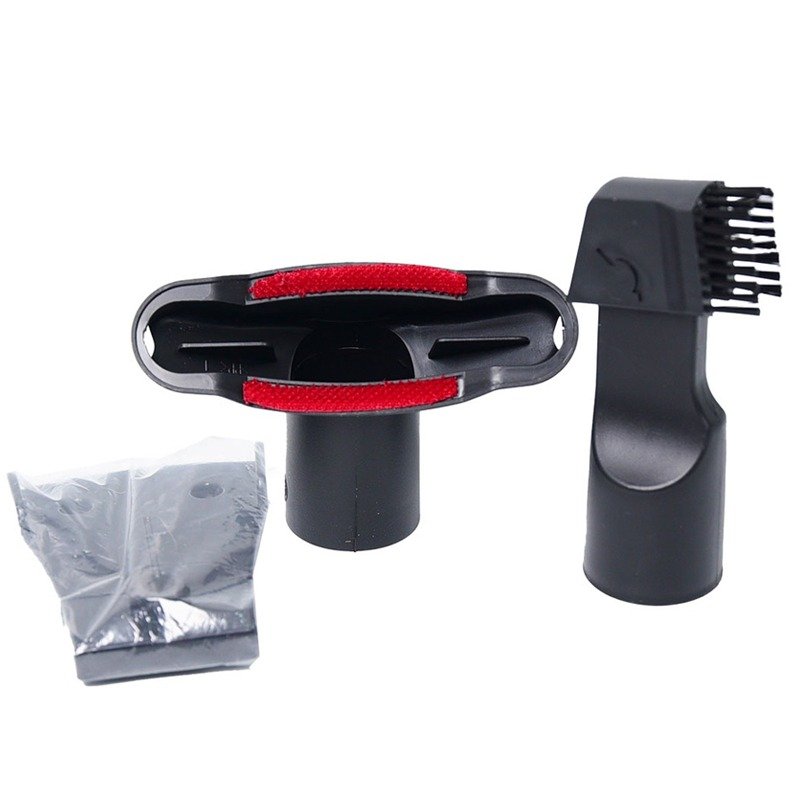 L’aspirateur est livré avec plusieurs accessoires pratiques, incluant 1 brosse plastique principale, 2 petits embouts pour les recoins et surfaces difficiles d’accès, ainsi qu’un support mural pour un rangement simple et gain de place.