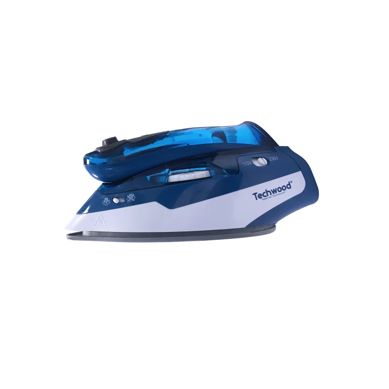 Fer à Vapeur de Voyage Techwood TFV-101 – Puissance : 900–1100 W – Poignée pliable – Fonction vapeur : avec jet de vapeur – Semelle : en céramique – Réglage température – Débit vapeur : 7–13 g/min – Capacité du réservoir : 70 ml – Sécurité : protection contre la surchauffe et voyant lumineux – Double voltage : 110–120 V / 220–240 V – Couleur : Bleu – Garantie : 1 an.