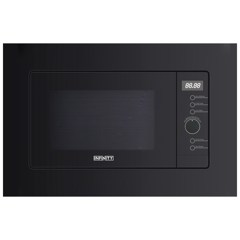 Micro-ondes Encastrable INFINITY 39 cm Micro-ondes Grill Couleur: NoirCapacité: 20 Litres Puissance du micro-ondes: 700WPuissance du grill: 800WTaille de plateau: 24,5 cm Control électronique/Afficheur: led Cavité en acier inoxydable6 menus de cuisson AutomatiqueVerrouillage de sécuritéGarantie: 2 ans.