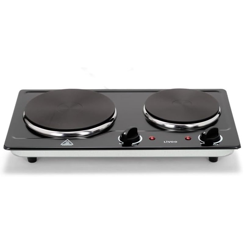 La plaque encastrable LIVOO est équipée de deux feux électriques de Ø15,5 cm et Ø18,5 cm pour une puissance totale de 2500 W, offrant une chauffe rapide et adaptée à tous les types de cuisson.