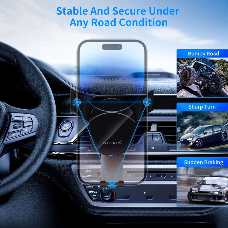 Le support téléphone voiture noir pour grille d’aération est conçu pour garantir une stabilité optimale sans vibrations, même sur routes accidentées. Grâce à son système à gravité intelligent et sa fixation à quatre griffes, il maintient fermement votre smartphone tout en permettant une utilisation confortable et sécurisée pendant la conduite. Son design compact et élégant s’intègre parfaitement à l’intérieur de votre véhicule.